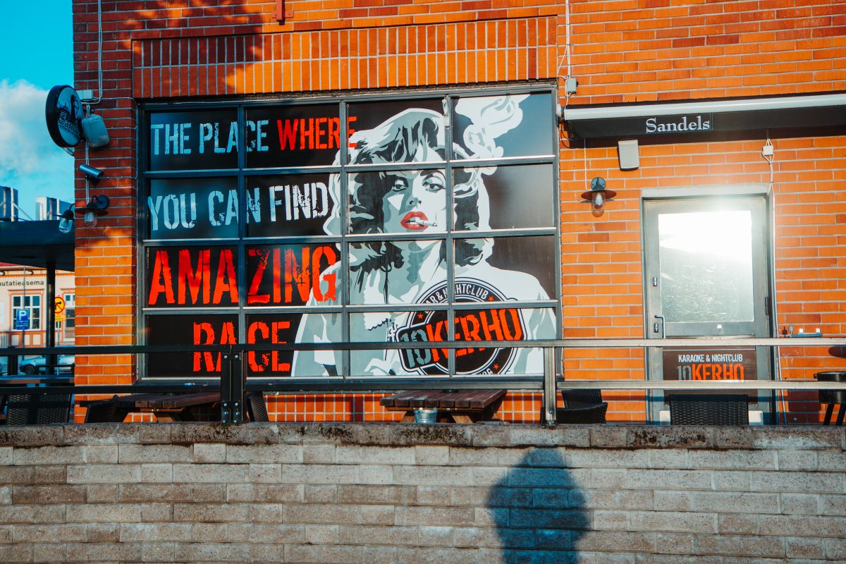 Ulkoteippaukset ja kyltit jotka erottuvat.