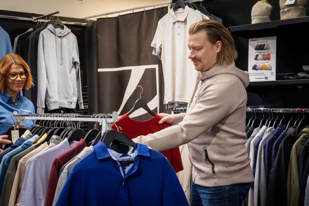 Saat meiltä työ- ja huomiovaatteet, t-paidat, colleget, pikeet, neuleet, takit, lippikset, pipot, reput ja paljon muuta. Päämerkkeinä Projob, Clique, Craft, Cutter&Buck sekä Mph Headgear.