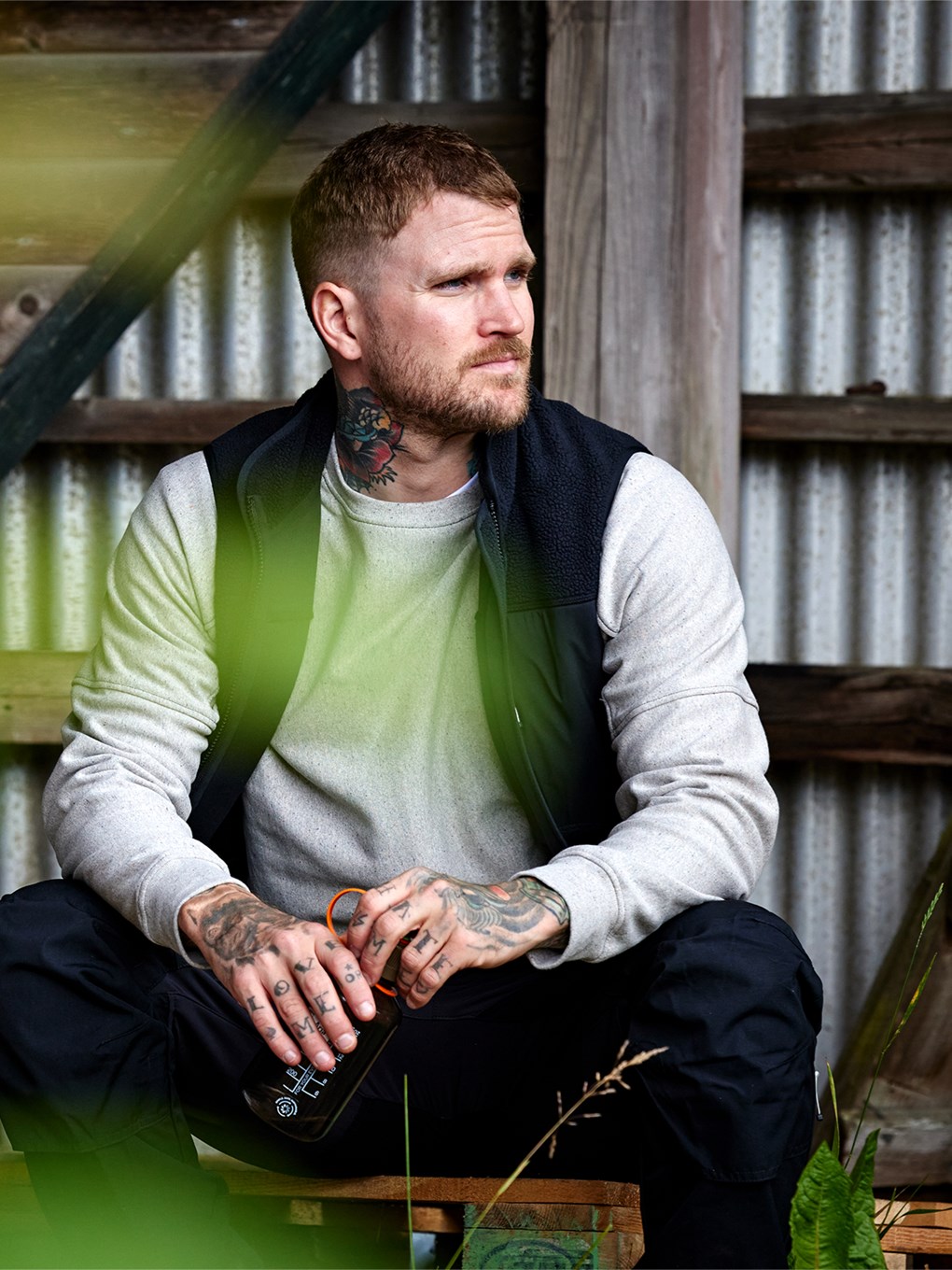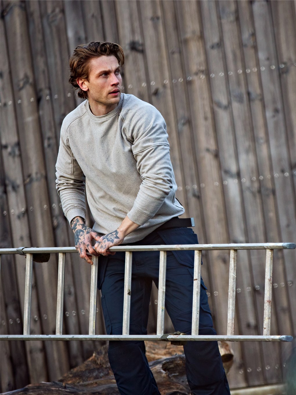 Klassinen collegepaita, jonka materiaaleista 15% on suljetun kierron työvaatekierrätysmateriaalia. PFAS vapaa