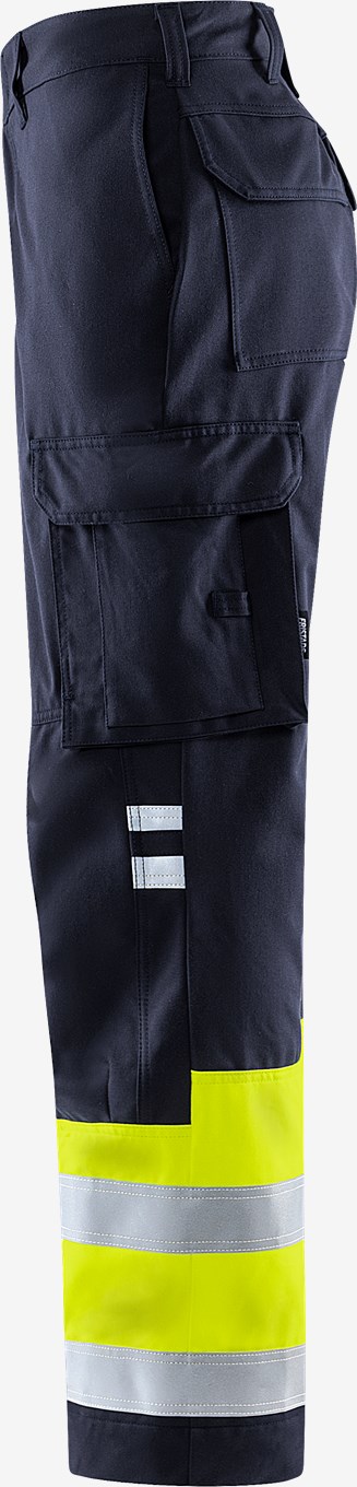 Näkyvät multinorm housut inherent palosuojauksella. Kestävät näkyvyysluokan 1 työhousut, jotka on valmistettu pehmeästä materiaalista tarjoten erinomaisen käyttömukavuuden ja korkean suojaustason. Housut soveltuvat ATEX-ympäristöihin ja ne on hyväksytty teolliseen pesuun. Siirtymässä PFAS-vapaiksi. Siirtymässä PFAS-vapaaksi