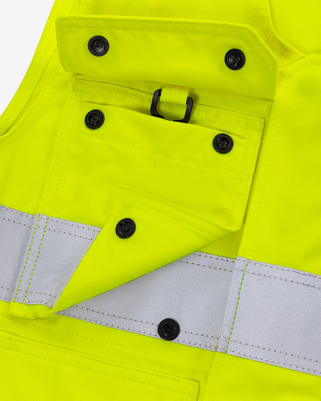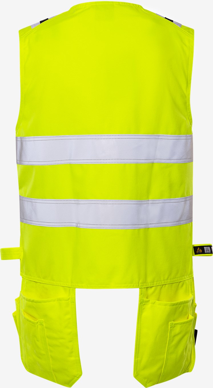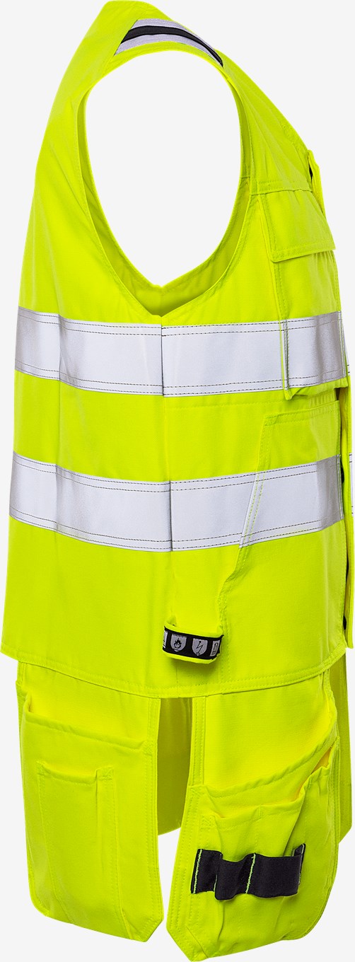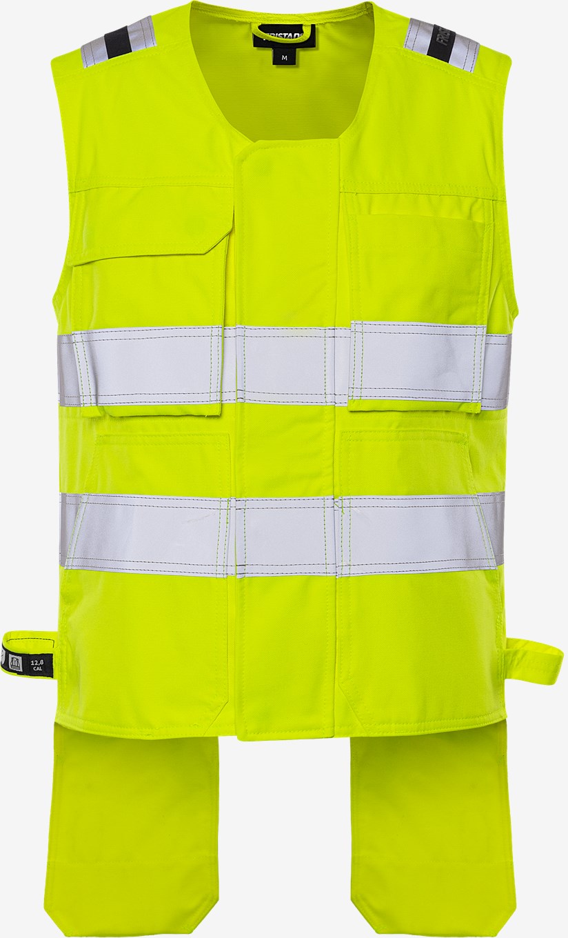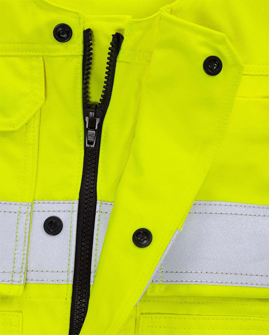Huomiovaatesertifioitu, itsessään paloturvallisesta materiaalista valmistettu liivi. Sopii ATEX-ympäristöihin, ei metalliosia. Hyväksytty teolliseen pesuun. Siirtymässä PFAS-vapaaksi