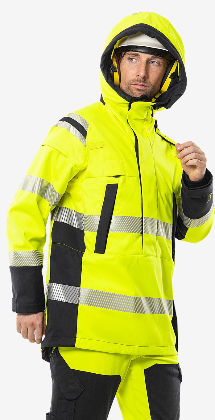 Multinorm anorakki joustavasta materiaalista korkealla valokaarisuojauksella. Tuulenpitävä ja vettähylkivä näkyvä takki itsessään paloturvallisesta materiaalista. Varustettu erikoistaskuratkaisuilla jokapäiväisen työn optimoimiseksi. Joustava ja toiminnallinen softshell-materiaali tarjoaa mukavan liikkumisvapauden. Siirtymässä PFAS-vapaaksi.