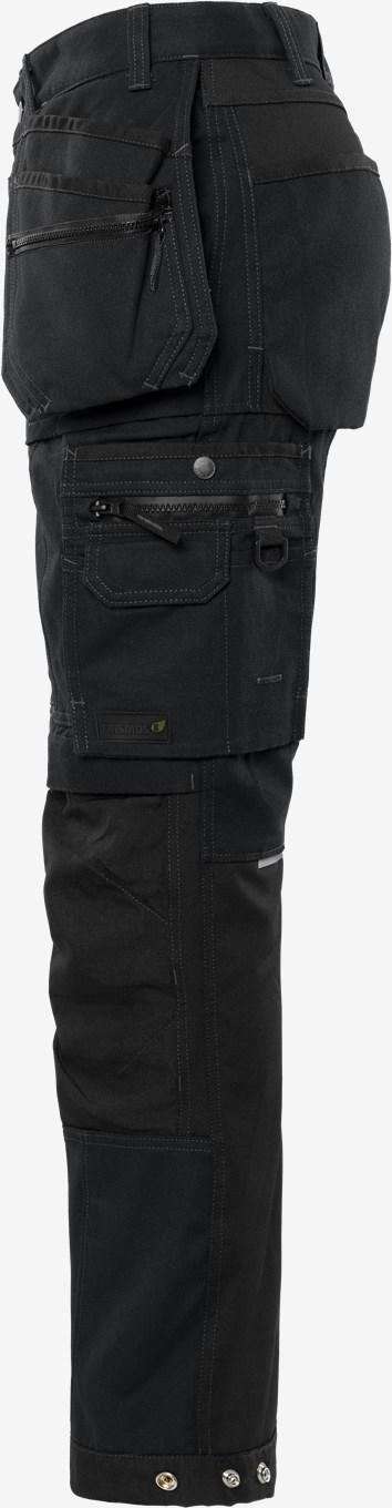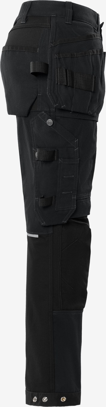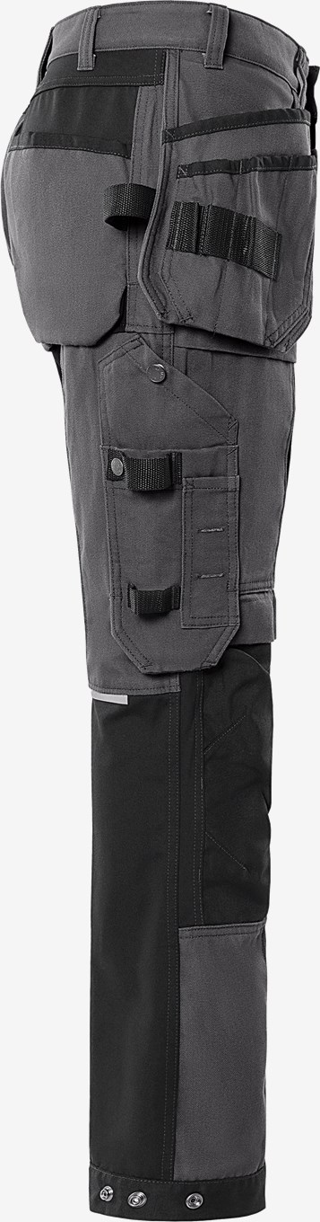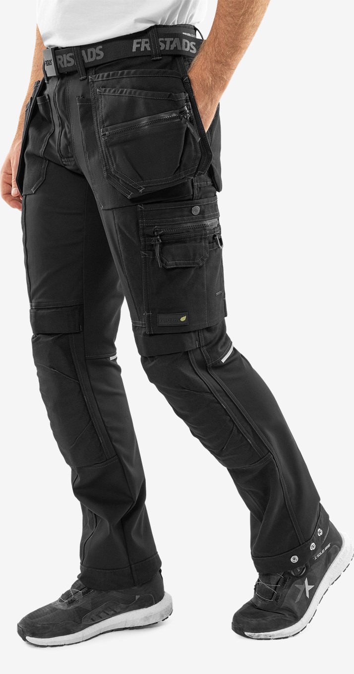 Rakentajan housut liikkuvuuden optimoivilla 4 suuntaan joustavilla suurilla stretch-paneeleilla. Kestävät käyttömukavasta puuvillasta ja kierrätetystä polyesterista valmistetut työhousut toiminnallisilla taskuratkaisuilla, CORDURA® -vahvikkeilla ja vedenpitävällä vetoketjutaskulla. Tuotteella on EPD-ympäristöseloste (Environmental Product Declaration). Konsepti: Alnaryd PFAS vapaa