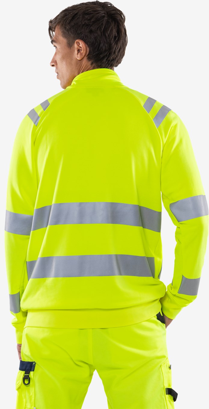 Näkyvä collegetakki kierrätetystä materiaalista. Mukava pehmeä takki, jossa vetoketjutaskut ja joustavat heijastepainatukset. Tuotteella on EPD-ympäristöseloste (Environmental Product Declaration). Konsepti: Trofta. PFAS-vapaa.