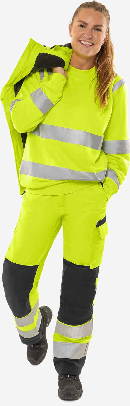 Vastuulliset huomiohousut naisille. Vyötärön ribbineulos stretch-paneelit takaavat erinomaisen istuvuuden ja työskentelymukavuuden. Kestävät ja kevyet housut käytännöllisillä taskuilla ja ominaisuuksilla. EPD (Environmental Product Declaration) ympäristöselosteilla. Konsepti: Trofta PFAS vapaa