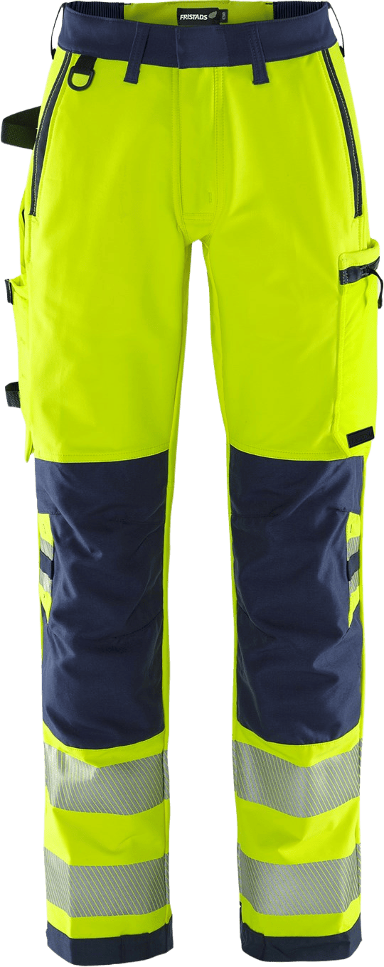 Vastuulliset naisten stretch huomiohousut, joissa on vyötäröllä lisämukavuutta tuovat stretch-paneelit. Housujen täysin joustava stretch-materiaali takaa erinomaisen työskentelymukavuuden. Housut on valmistettu biopohjaisesta ja kierrätetyistä materiaaleista. Vahvikkeet kulutukselle alttiilla alueilla. EPD (Environmental Product Declaration) ympäristöselosteilla. Konsepti: Stiby PFAS vapaa