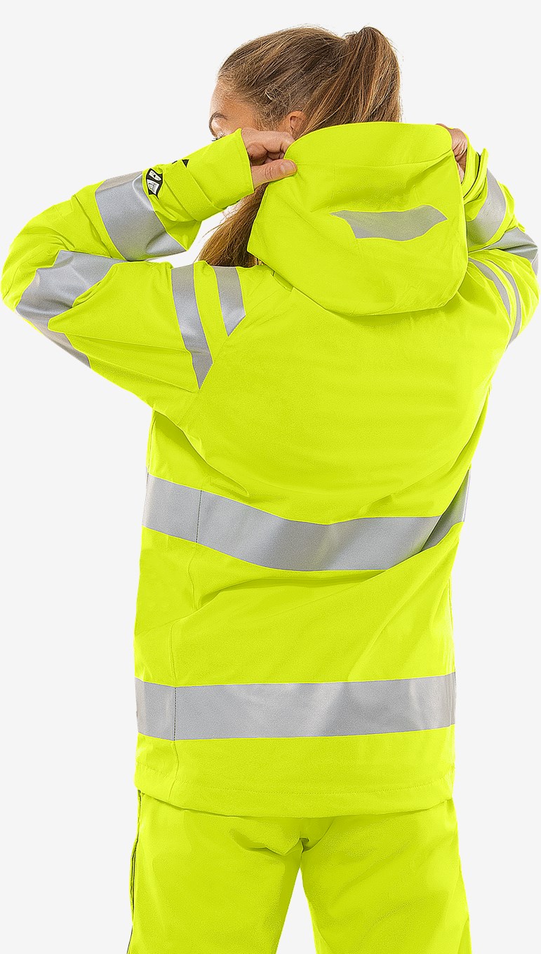 Näkyvä naisten kuoritakki pehmeästä ja joustavasta kierrätetystä materiaalista. Veden- ja tuulenpitävä, hengittävä työtakki teipatuilla saumoilla. Mukava vuoden ympäri käytettävä vaate, joka voidaan yhdistää eristävään välikerrokseen kylmällä säällä. Tuotteella on EPD-ympäristöseloste. Konsepti: Trofta. PFAS-vapaa.