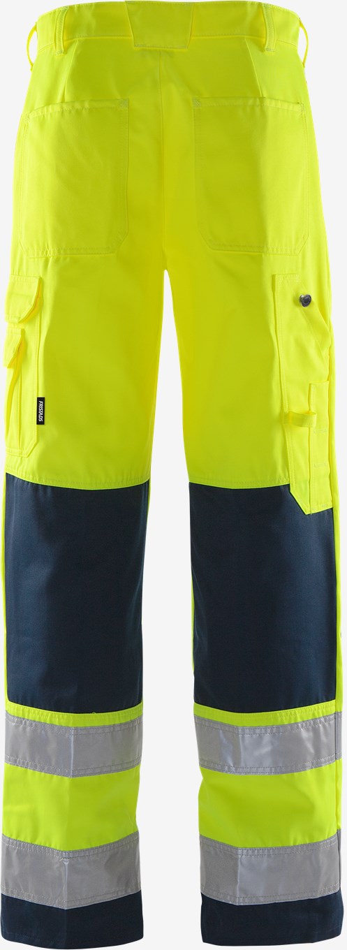 Näkyvät rakentajan housut naisille irrotettavilla riipputaskuilla. Kevyet ja kestävät työhousut luomupuuvillasta ja kierrätetystä polyesteristä. Vyötärön stretch-paneelit tuovat lisää käyttömukavuutta. Konsepti: Trofta PFAS vapaa