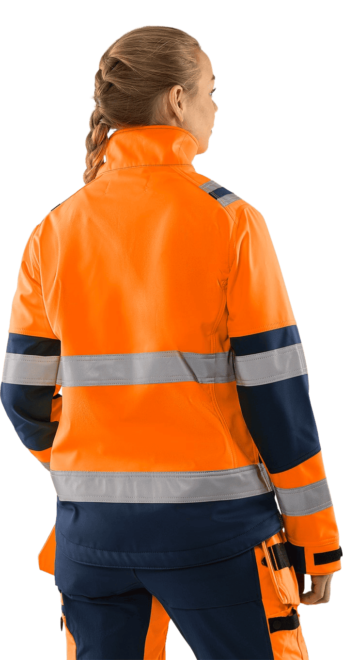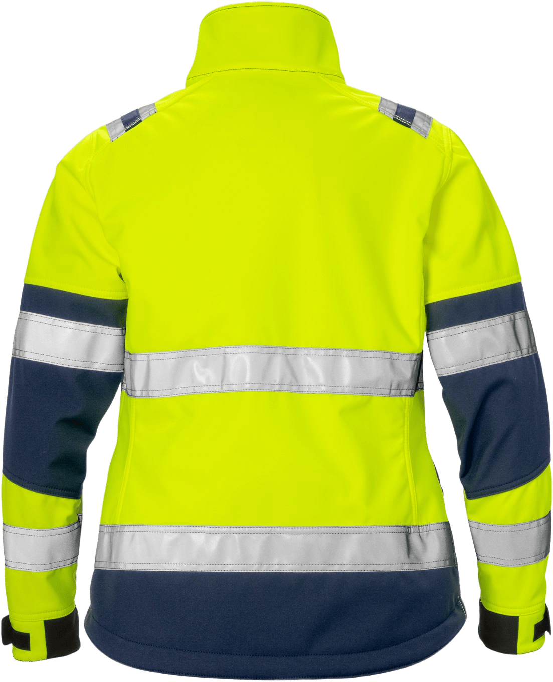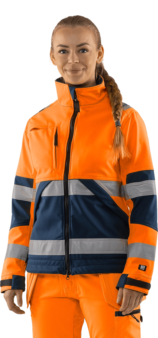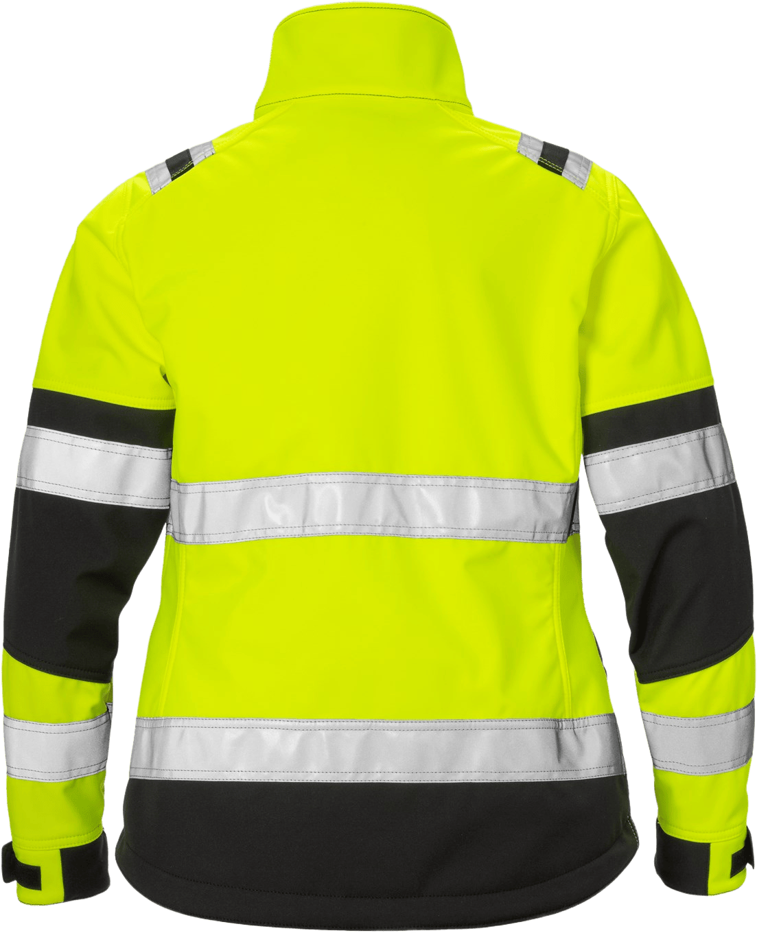 Näkyvä softshell-takki naisille. Tuulenpitävästä ja vettä hylkivästä joustavasta materiaalista valmistettu takki soveltuu lähes ympärivuotiseen käyttöön. Siirtymässä PFAS-vapaaksi