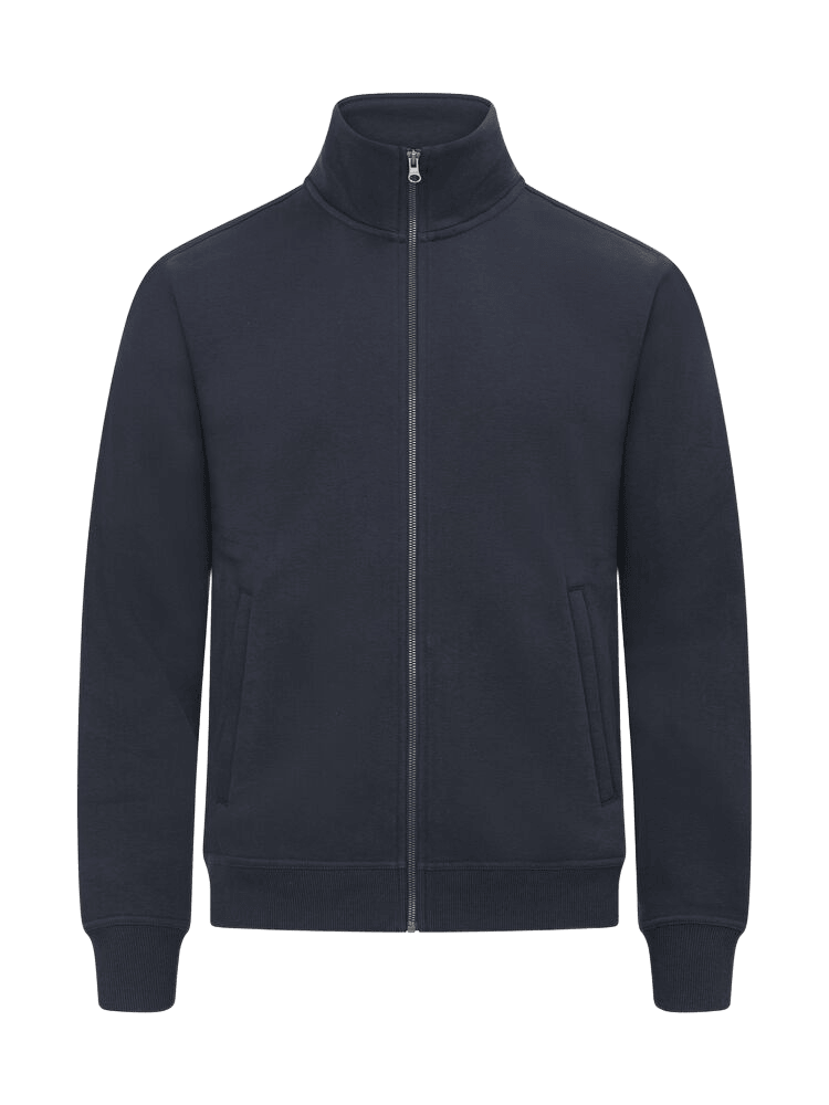 Unisex-mallinen collegetakki puuvillan ja kierrätetyn polyesterin sekoituksesta. Korkea kaulus, SBS-vetoketju ja vetoketjulliset sivutaskut. Joustava resori helmassa ja hihansuissa. Ripustuslenkki ja helposti irrotettava niskalappu, joka voidaan tarvittaessa vaihtaa. Pehmeä stabilisoitu kangas, joten paitaa voidaan pestä paljon ilman että se nyppyyntyy.