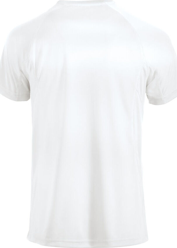 Urheilullinen t-paita teknisestä materiaalista. Selkäpuolella birds-eye -neulosta.