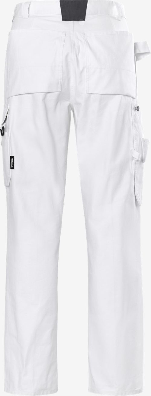 Toiminnalliset rakentajan housut täysin 4-suuntaan joustavasta materiaalista irrotettavilla riipputaskuilla. Käytännölliset tuuletusaukot polvissa ja toisessa reidessä aukeavat vetoketjuilla. Kestävät työhousut CORDURA® -vahvistetulla etuosalla. Housujen lahkeita on hieman pidennetty edestä ja ne sopivat tiukasti kenkien ympärille soran ja lian sisäänpääsyn estämiseksi. Housut on osittain valmistettu kierrätetystä tekstiilijätteestä. PFAS vapaa PFAS vapaa