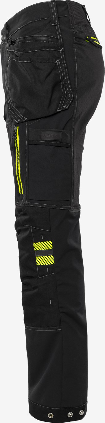 Edistykselliset työhousut naisten mitoituksella. Valmistettu 4-suuntaan joustavasta materiaalista äärimmäistä mukavuutta ja liikkumavapautta ajatellen. Reisipaneelit ja takaosa kestävää neljään suuntaan joustavaa ripstop CORDURA® stretch materiaalia. Reisitaskuissa verkkotuuletusaukot. Erittäin mukava vyötärö ja helppokäyttöinen puhelintasku stretch-materiaalia. Konsepti: Tyresta PFAS vapaa
