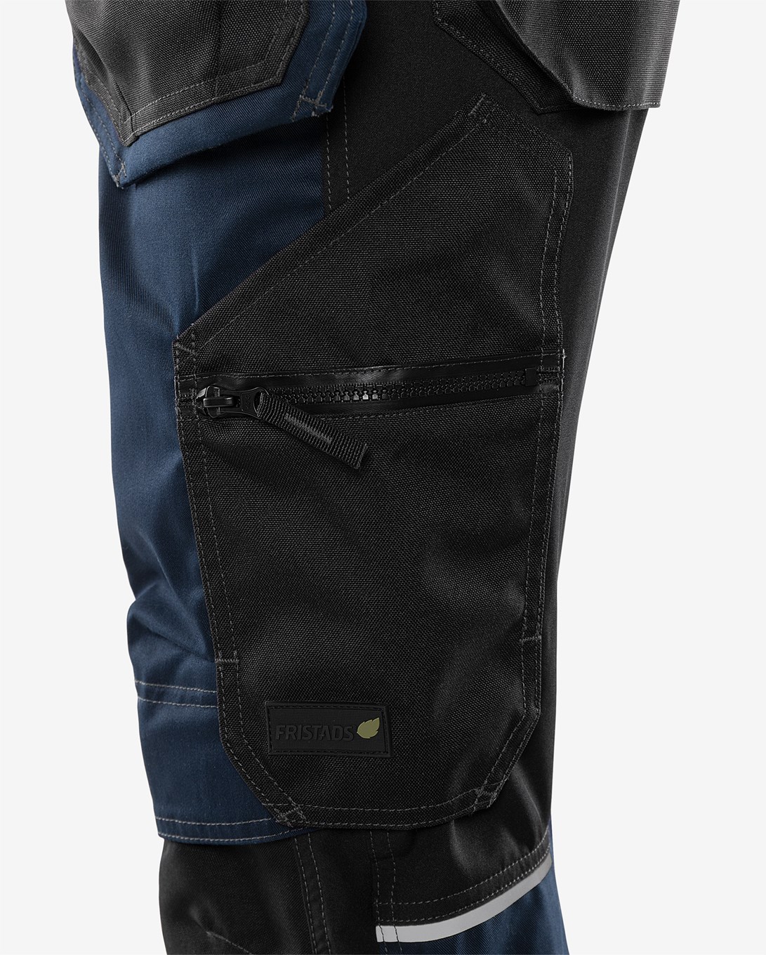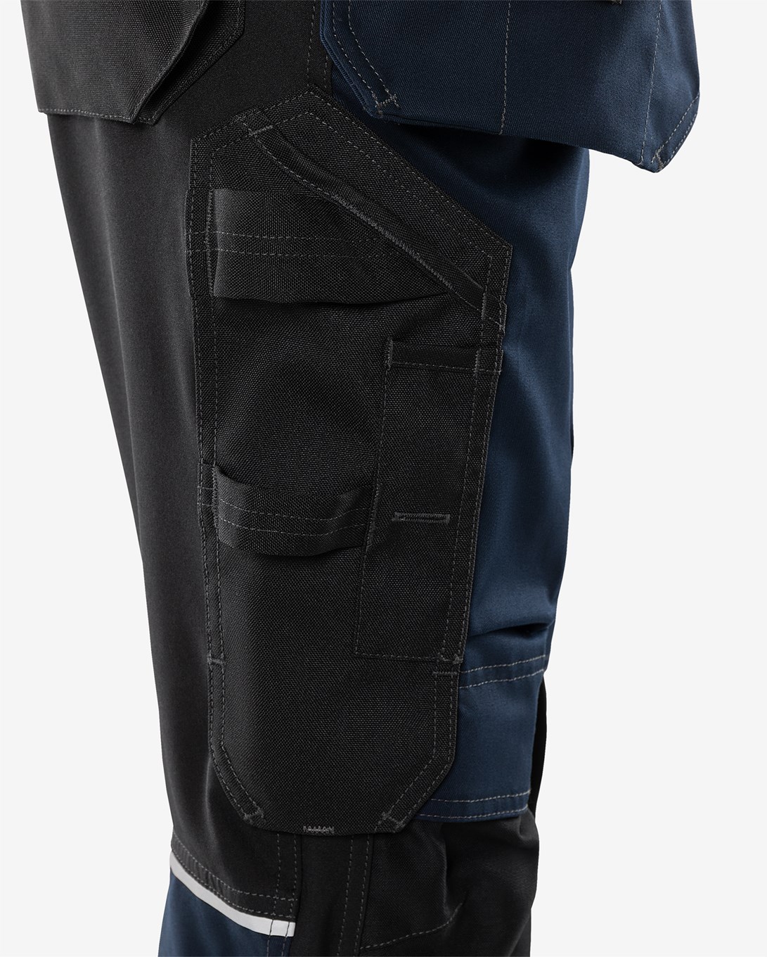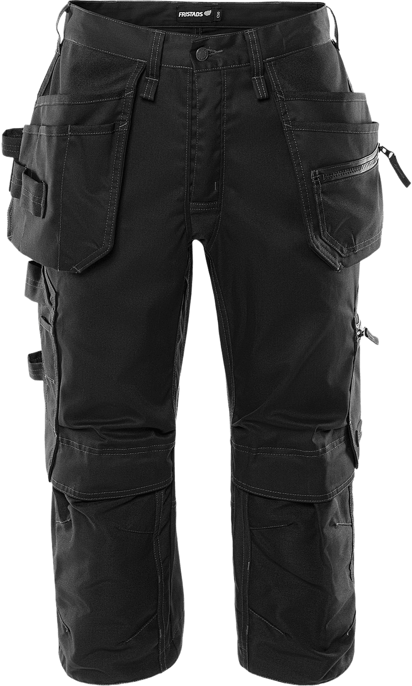 Rakentajan piraattihousut neljään suuntaan joustavilla stretch paneeleilla. Valmistettu kevyestä ja kestävästä materiaalista, jossa mekaaninen jousto, osa materiaalista kierrätettyä polyesteria. Mukavat työhousut, joissa kaikki tarvittavat toiminnot ja ominaisuudet. Konsepti: Alnaryd PFAS vapaa