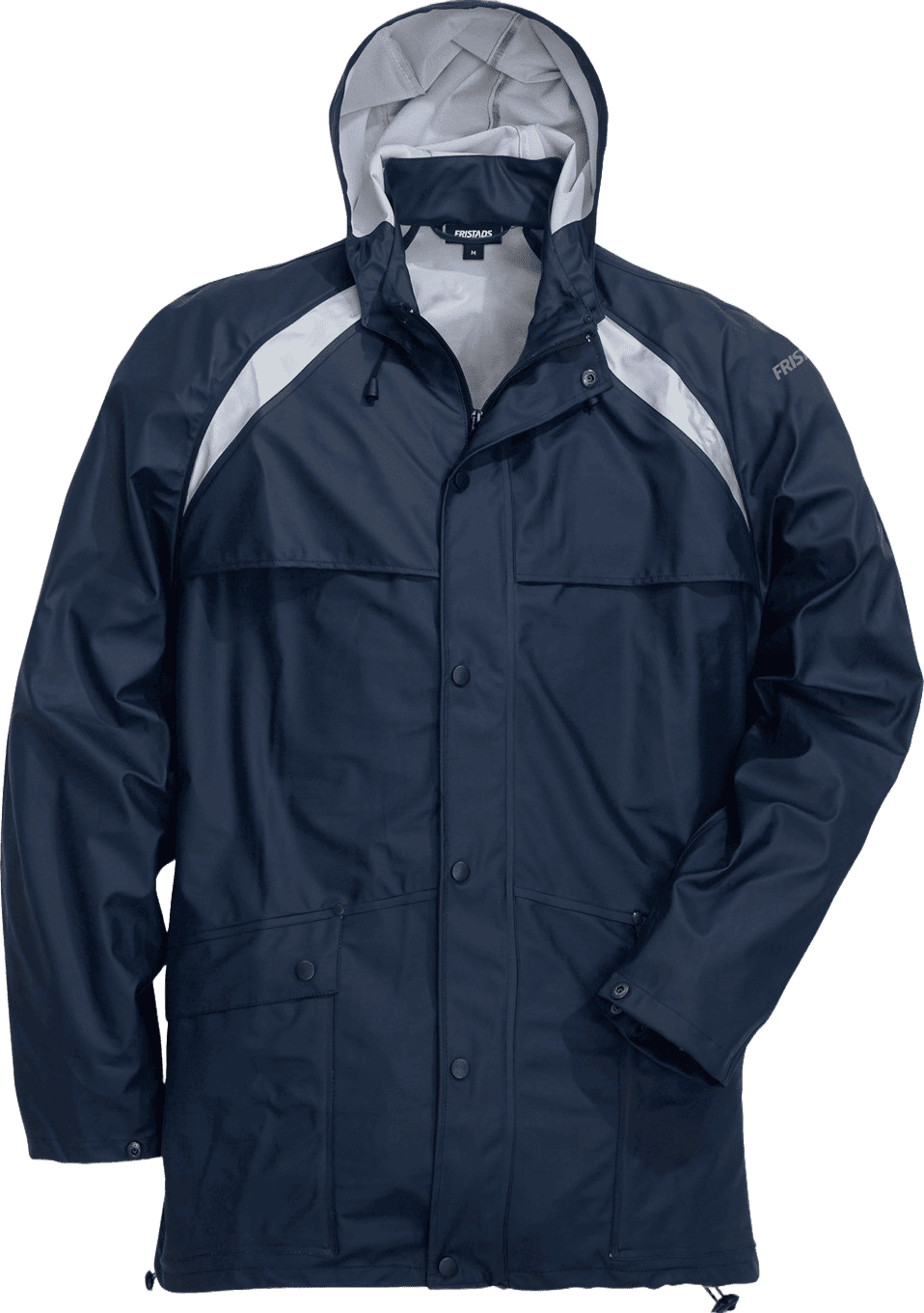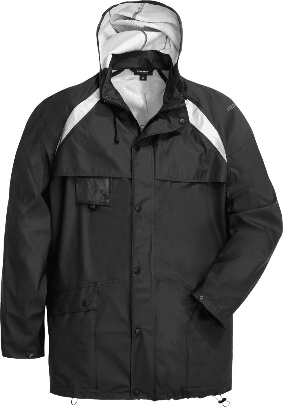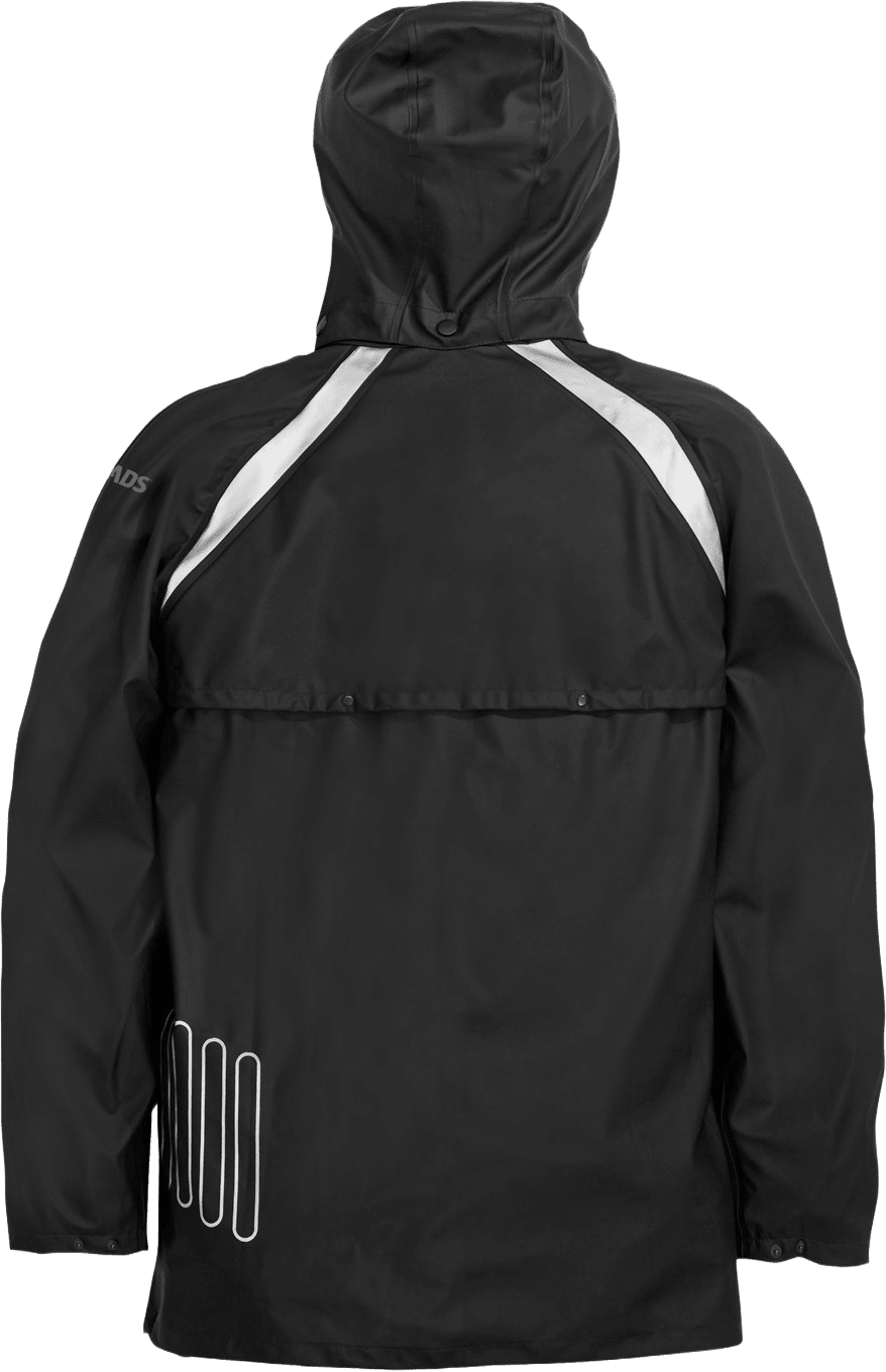Sadetakki joustavasta materiaalista. Irrotettava huppu, tuuletusaukot edessä ja takana. PFAS vapaa