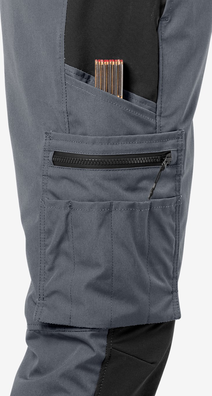 Työhousut, joissa suuret neljään suuntaan joustavat paneelit takana ja valikoiduissa kohdissa joustavuuden optimoimiseksi. Valmistettu vahvasta ja kevyestä materiaalista, joka on vettä hylkivää ja nopeasti kuivuvaa. PFAS vapaa