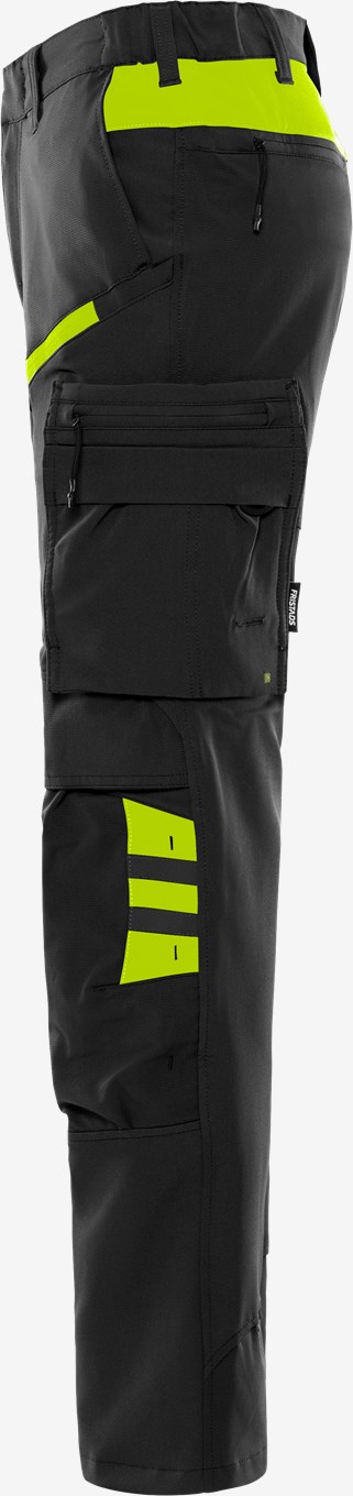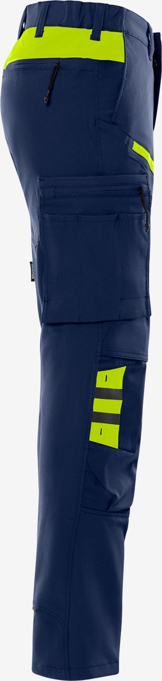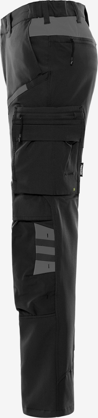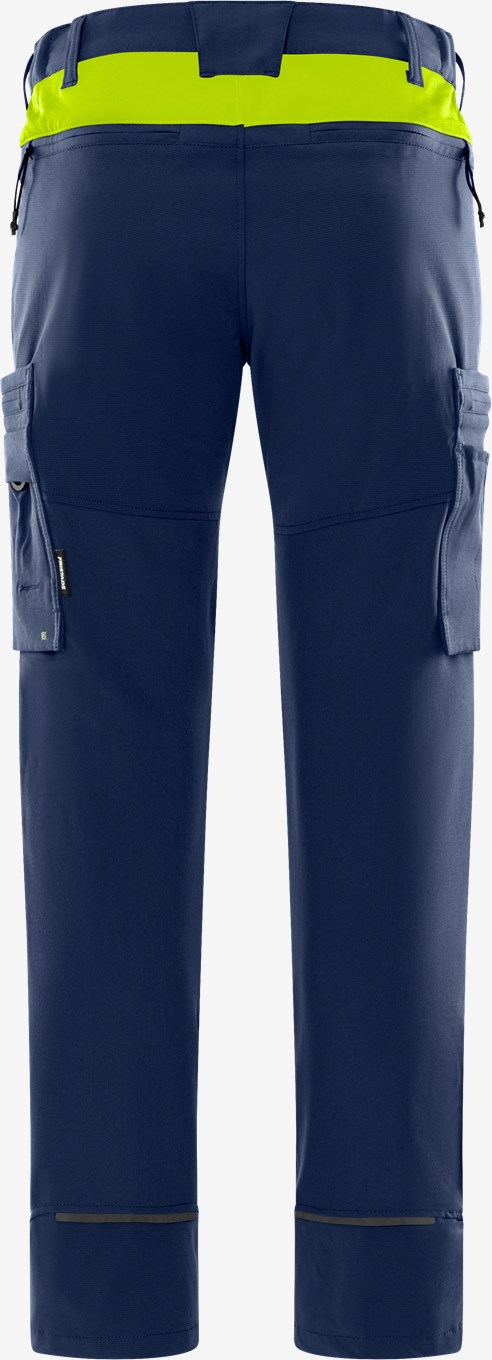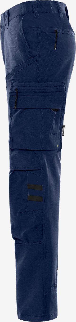 Mukavat ja kevyet työhousut, jotka on valmistettu neljään suuntaan joustavasta materiaalista ripstop-vahvikkeilla. Toimiva muotoilu, joka sopii sekä rakennusalan että palvelualan työntekijöille. Värit 544 Navysininen ja 940 Musta on valmistettu kierrätetystä polyesteristä ja elastaanista. Muut värit ovat siirtymässä kohti kestävämpää materiaalia. PFAS-vapaa. Konsepti: Skarup