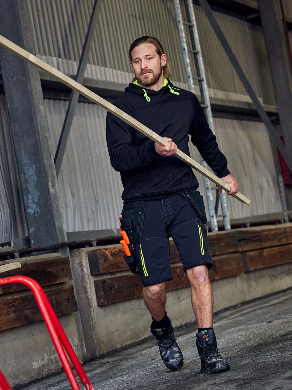Edistykselliset rakentajan shortsit, valmistettu 4-suuntaan joustavasta stretch-materiaalista äärimmäistä mukavuutta ja liikkumavapautta ajatellen. Työshortsit kestävästä joustomateriaalista, erityisen mukava vyötärö ja monia toiminnallisuuksia. Siirtymässä kohti kestävämpää materiaalia. Konsepti: Tyresta PFAS vapaa