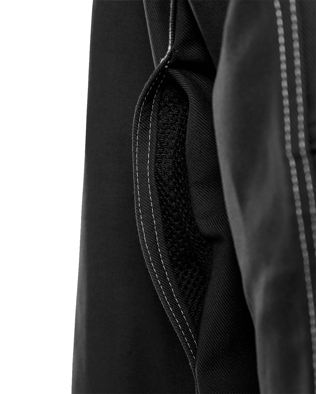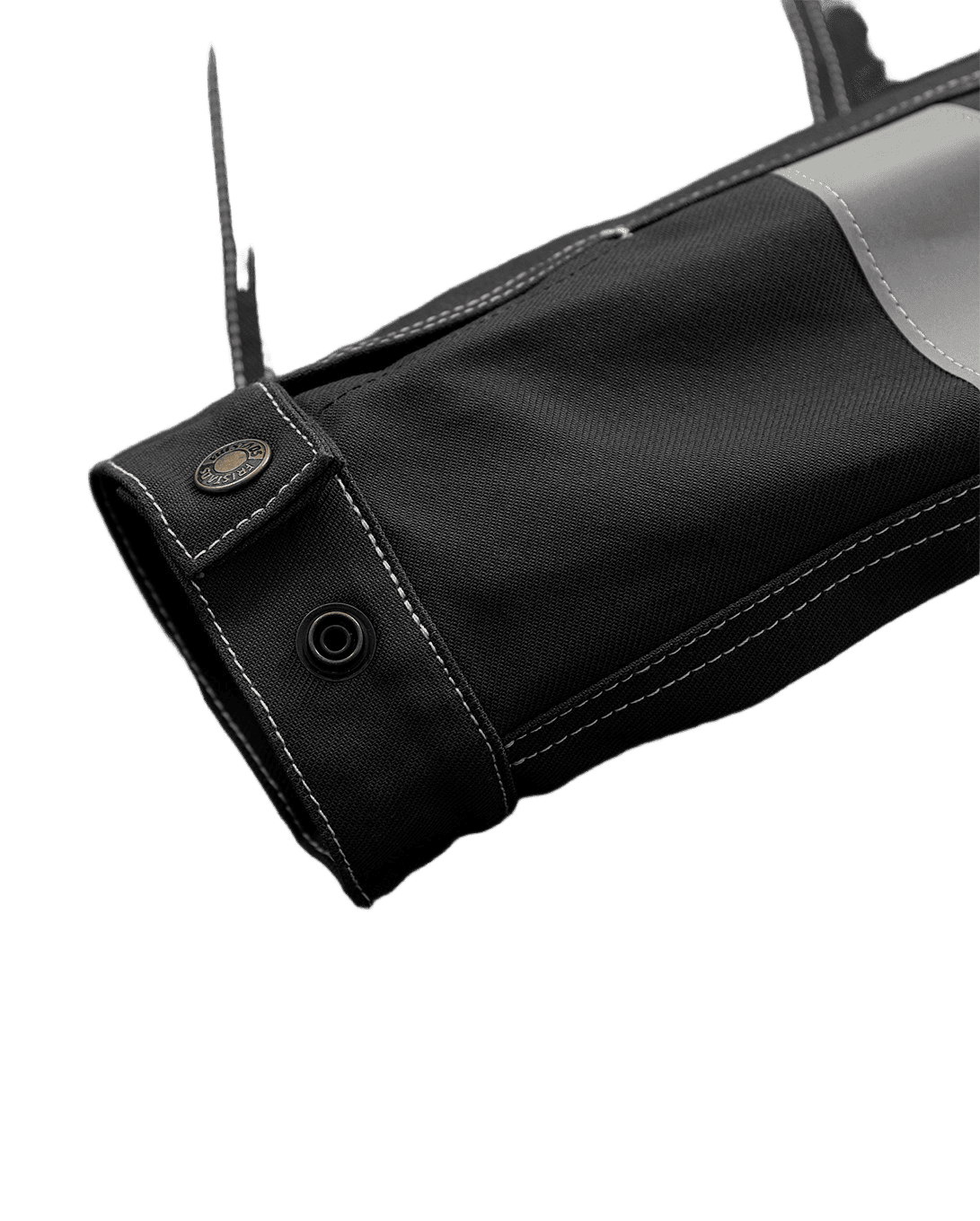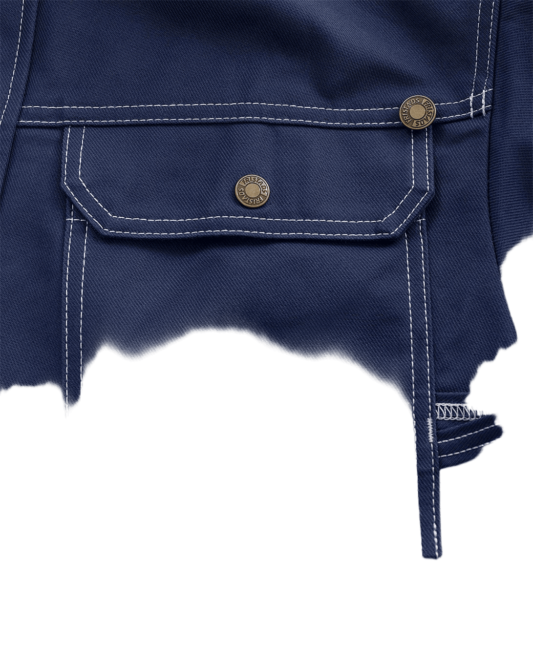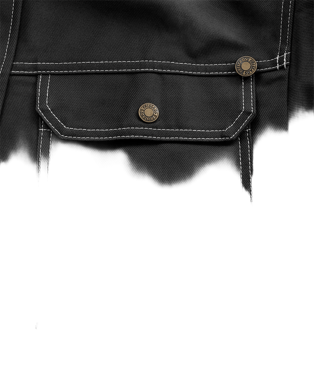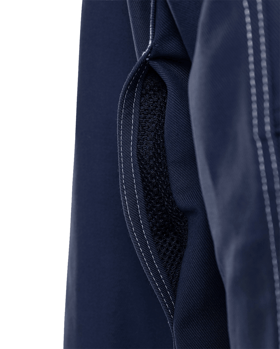 Kestävä rakentajan takki 100% FAS®-puuvillasta piilotetulla etuketjulla, useilla taskuilla ja neonkeltaisilla paneeleilla. Siirtymässä PFAS-vapaaksi. Konsepti: Classics