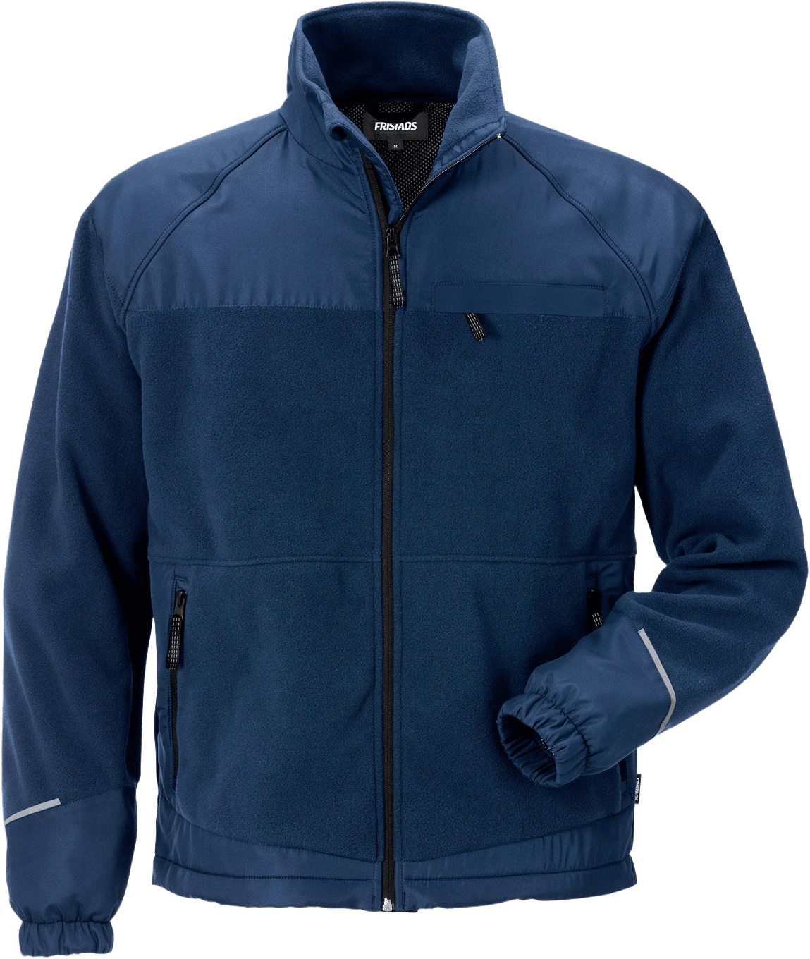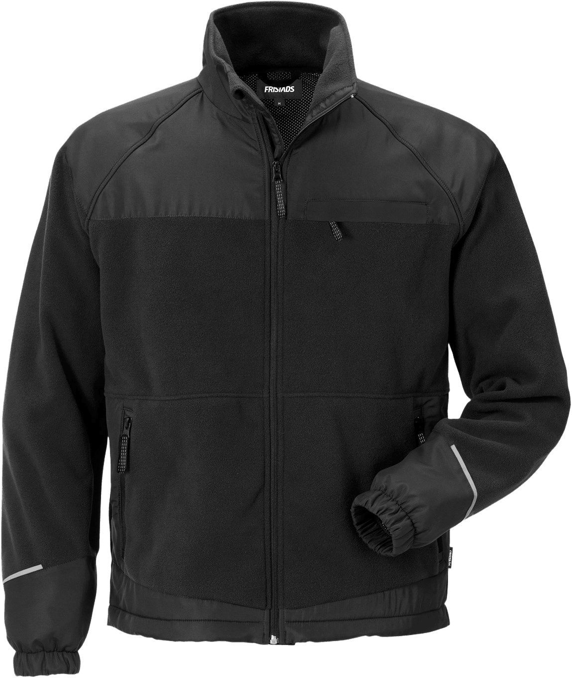 Tuulenpitävä, vettähylkivä ja hengittävä fleecetakki, heijastimet edessä ja takana sekä säädettävä helma. PFAS vapaa